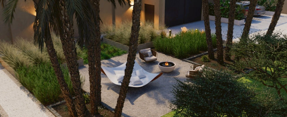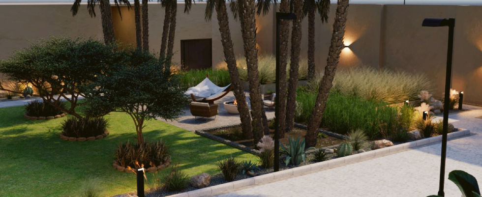 This project presents a contemporary outdoor residential design focused on creating a calm and inviting environment. The layout integrates lush landscaping, water features, and carefully arranged seating areas to enhance comfort and functionality.